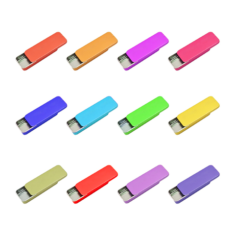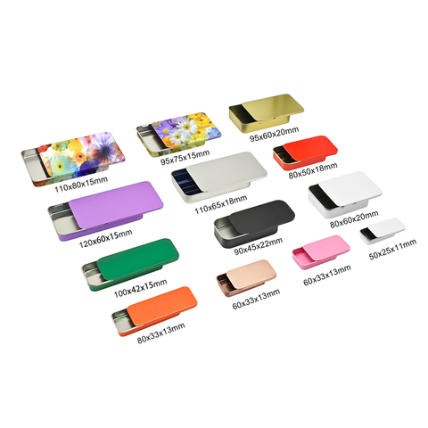 Gran oferta, caja de lata deslizante de varios tamaños, bálsamo superior deslizante pequeño, contenedor de Perfume sólido, Mini latas de Metal rectangulares para dulces de menta