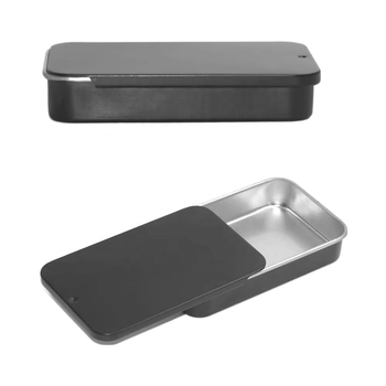 Nueva llegada Rosa blanco negro latón cuadrado Mini rectángulo Slide Top caja de lata pequeña caja de lata de Metal deslizante para bálsamo/menta/caramelo